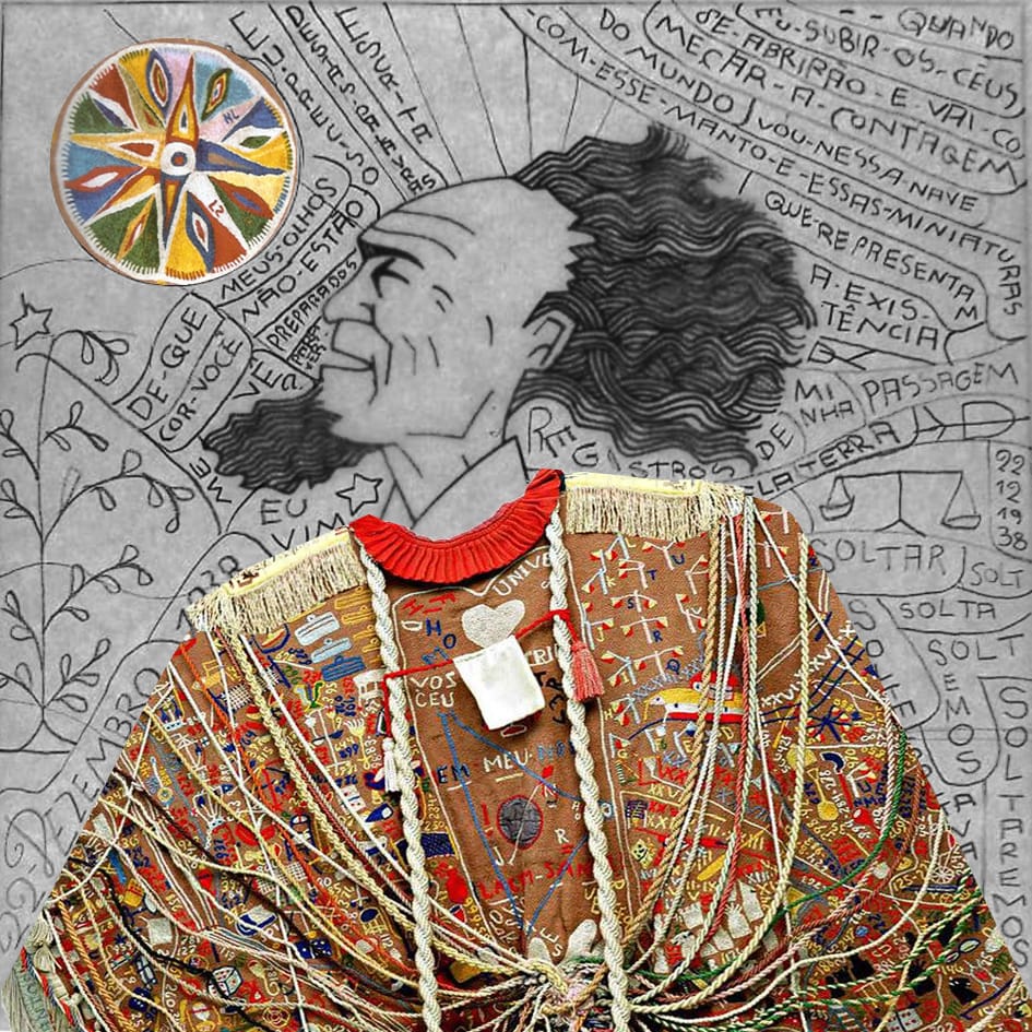 Bordado que apresenta uma caricatura de Arthur Bispo do Rosário (1911-1988), considerado o senhor das miniaturas, com seu “Manto da Apresentação”, sua criação mais emblemática. Esta miniatura é uma releitura de sua obra, das suas explicações sobre o mundo e de como resistia à violência do manicômio onde viveu.