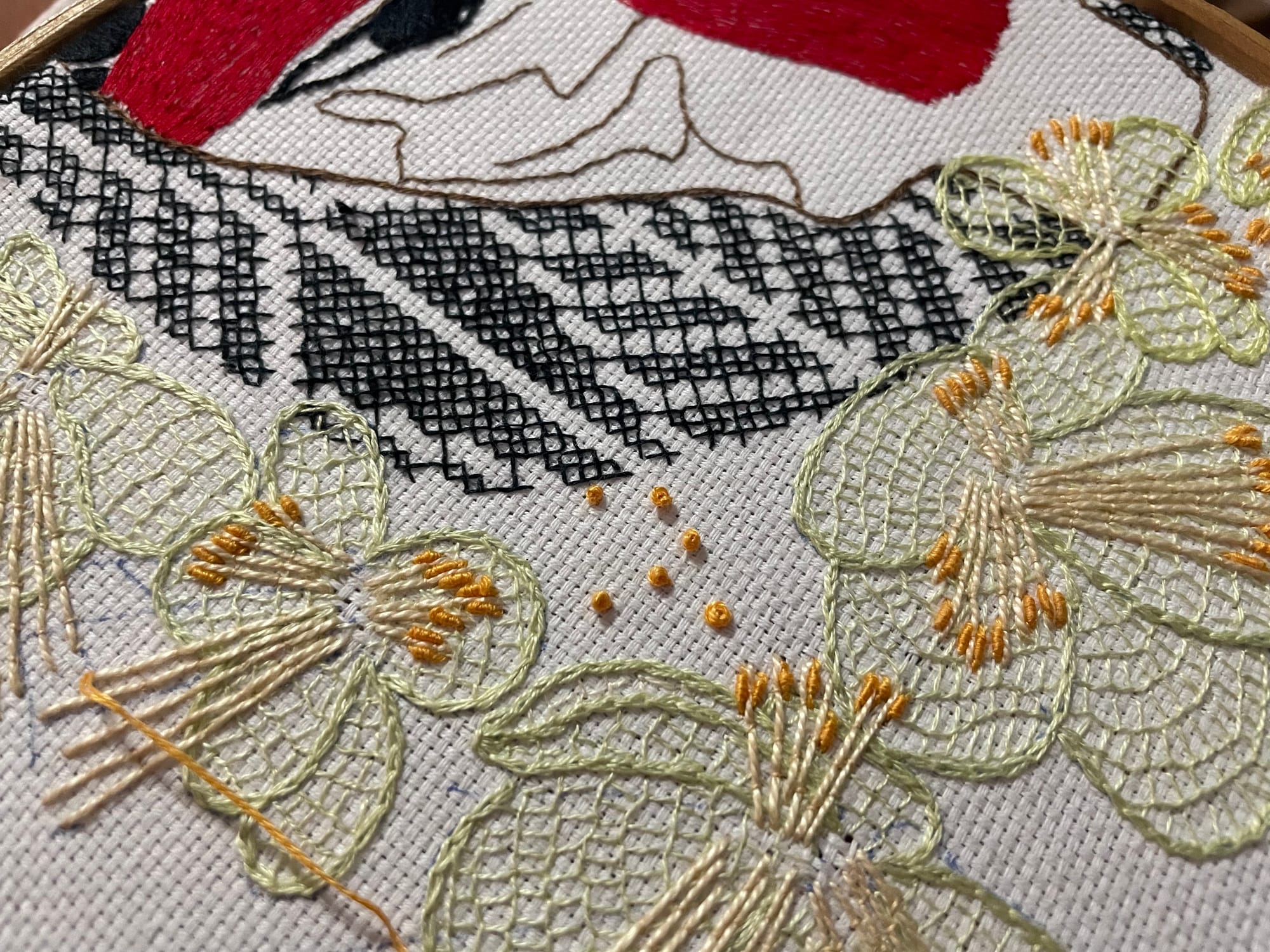 Bordado livre sobre etamine